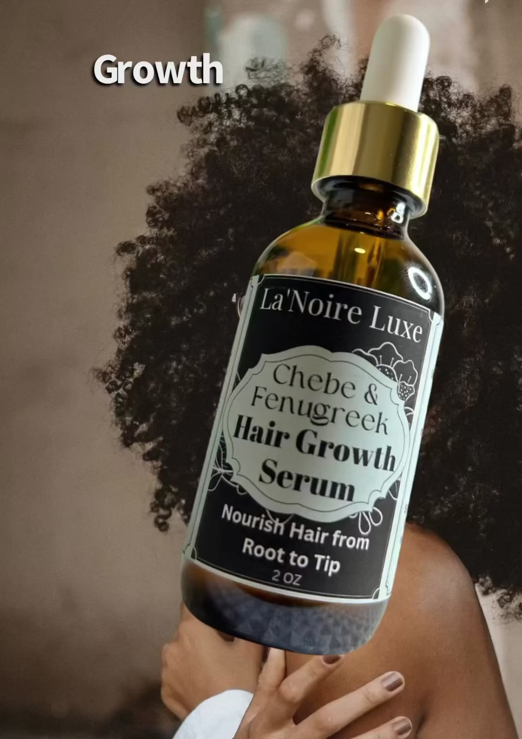 Say goodbye to thinning edges and breakage! Our Chebe & Fenugreek Hair Growth Oil is a nourishing blend of natural ingredients designed specifically for 4B/4C hair. Infused with Chebe powder, fenugreek seeds, rosemary, black seeds, and hibiscus, this potent oil stimulates scalp health, promotes growth, and strengthens strands.